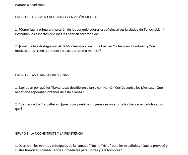 Trabajo grupal sobre la Conquista de México